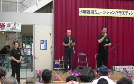 正絃会社中「特別出演」 タイトル「水郷ミュージシャンバライティーショー」 ●出演 津軽民謡:菊安勝謡(友情出演) 津軽三味線:東原正絃 尺八:草野常雄 太鼓:東原ヨシ子 津軽三味線正絃会:一瀬善正・坂本由基子・石川慈鈴・一瀬晴代・木村美子 潮来市ショッピングモールアイモア特設ステージ 2011/6/26 ■津軽よされ節&道南口説 唄:菊安勝謡■ |