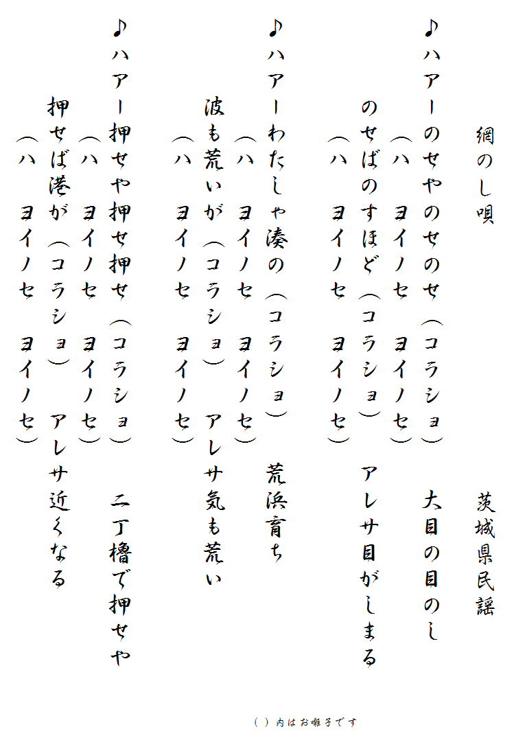 民謡歌詞集 網のし唄/茨城県民謡