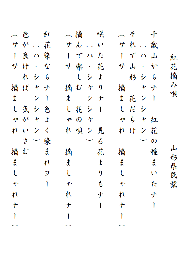 民謡歌詞集 紅花摘み唄唄/山形県民謡