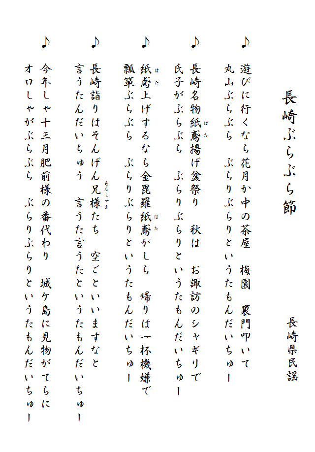 民謡歌詞集 長崎ぶらぶら節/長崎県民謡