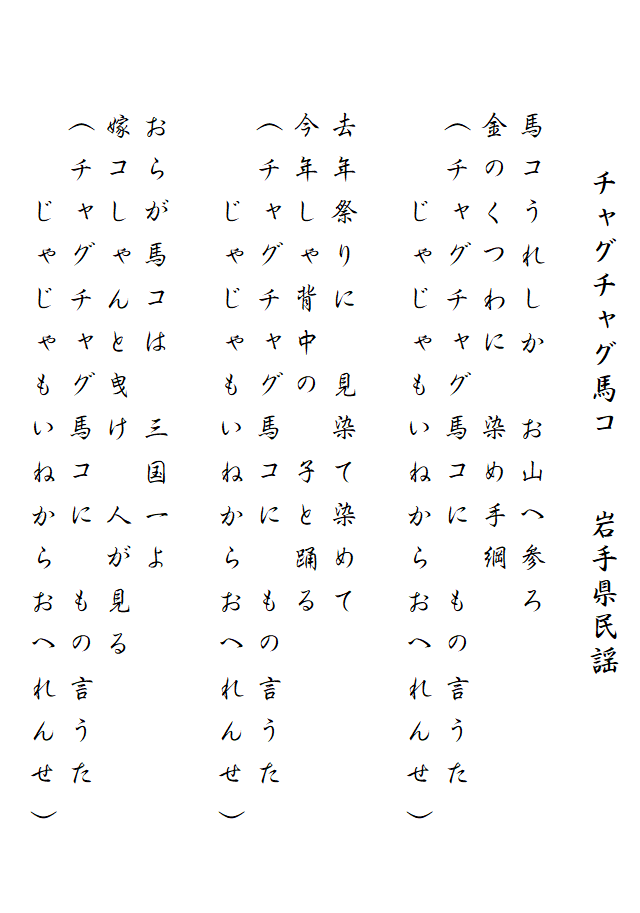 民謡歌詞集 チャグチャグ馬っ子/岩手県民謡