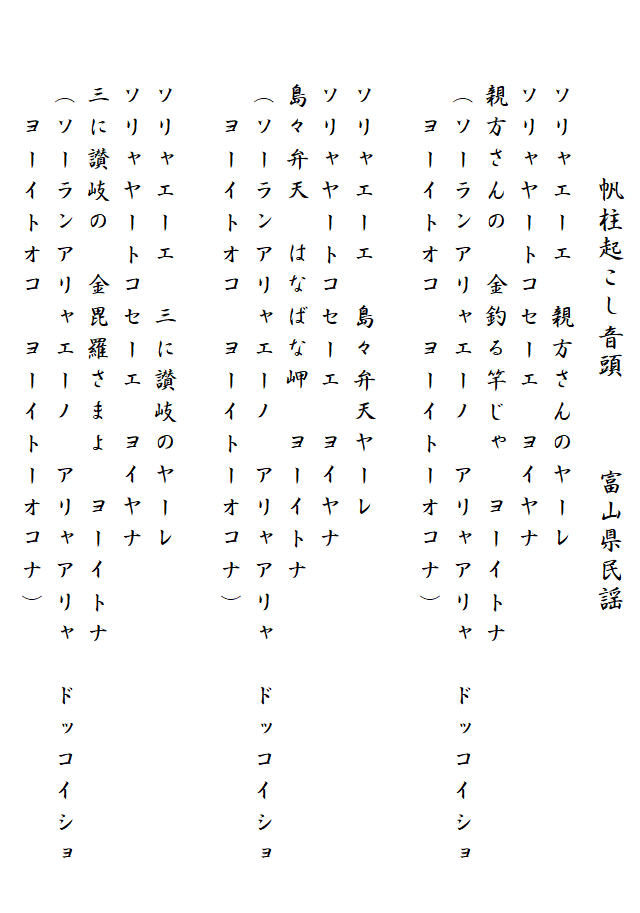 民謡歌詞集 帆柱おこし音頭/富山県民謡