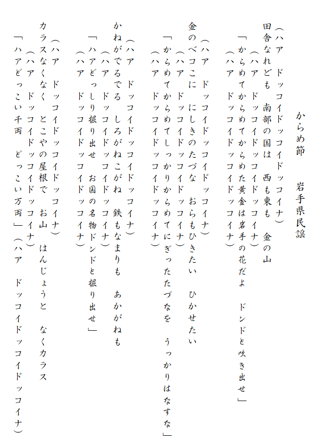 民謡歌詞集 からめ節/岩手県民謡