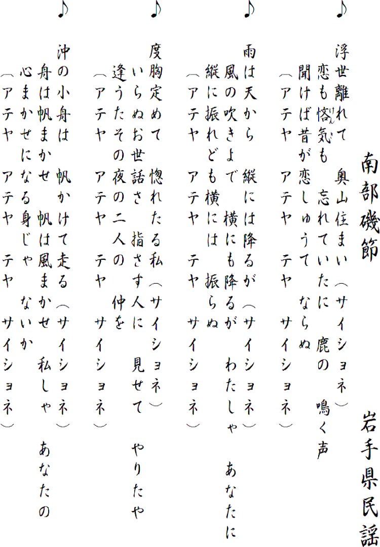 民謡歌詞集 南部磯節/岩手県民謡