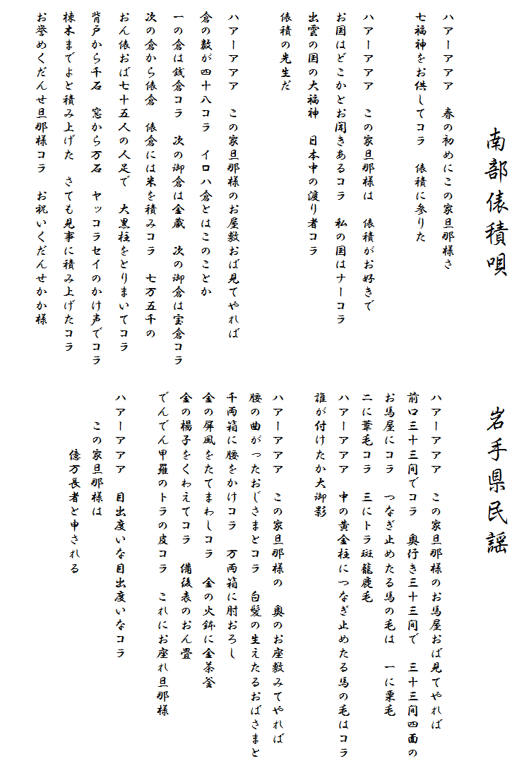 民謡歌詞集 南部俵積唄/岩手県民謡