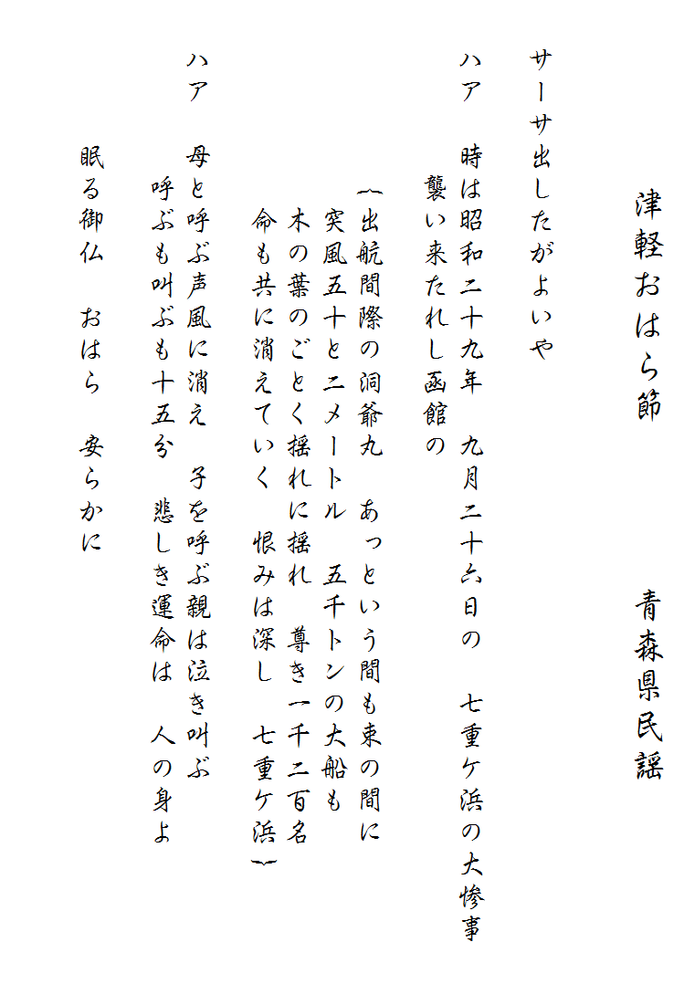 民謡歌詞集 津軽おはら節(洞爺丸)/青森県民謡
