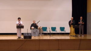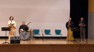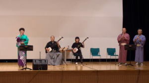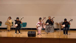 津軽三味線 合奏 1.津軽あいや節 2.津軽じょんがら節 東原 正絃 野口 恵美 坂本由基子 安藤 愛美 太鼓 東原ヨシ子 |