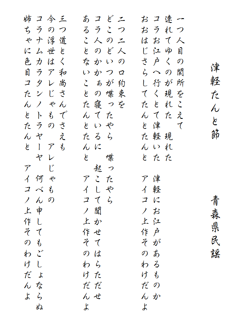 民謡歌詞集 津軽たんと節その1/青森県民謡