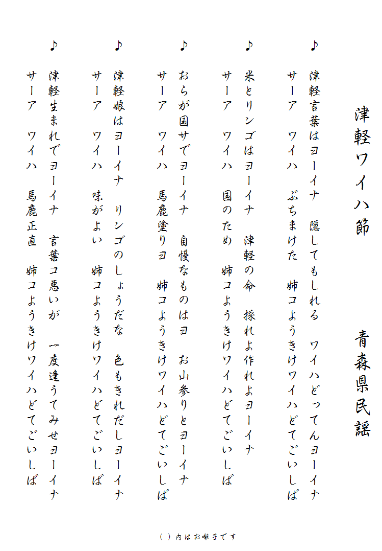 民謡歌詞集 津軽ワイハ節/青森県民謡